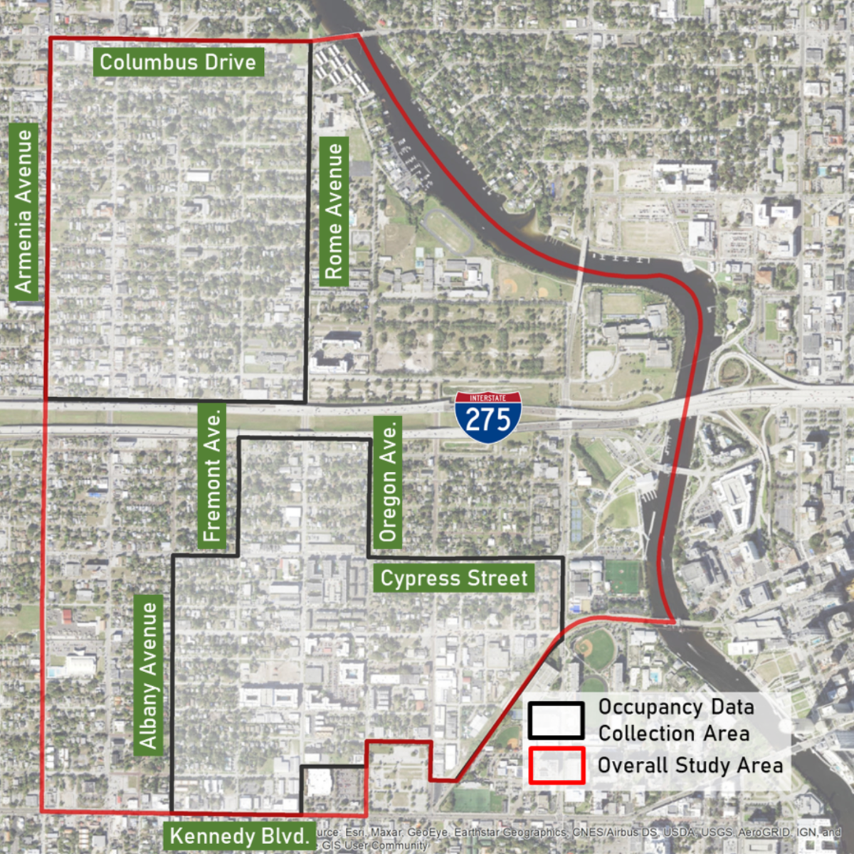 The West Tampa CRA includes the area roughly between the Hillsborough River, and Armenia Avenue, Columbus Drive, and Kennedy Boulevard, as shown in the map below. This Parking Study will examine existing publicly-accessible parking (both on-street and off-street) and make recommendations for the future.